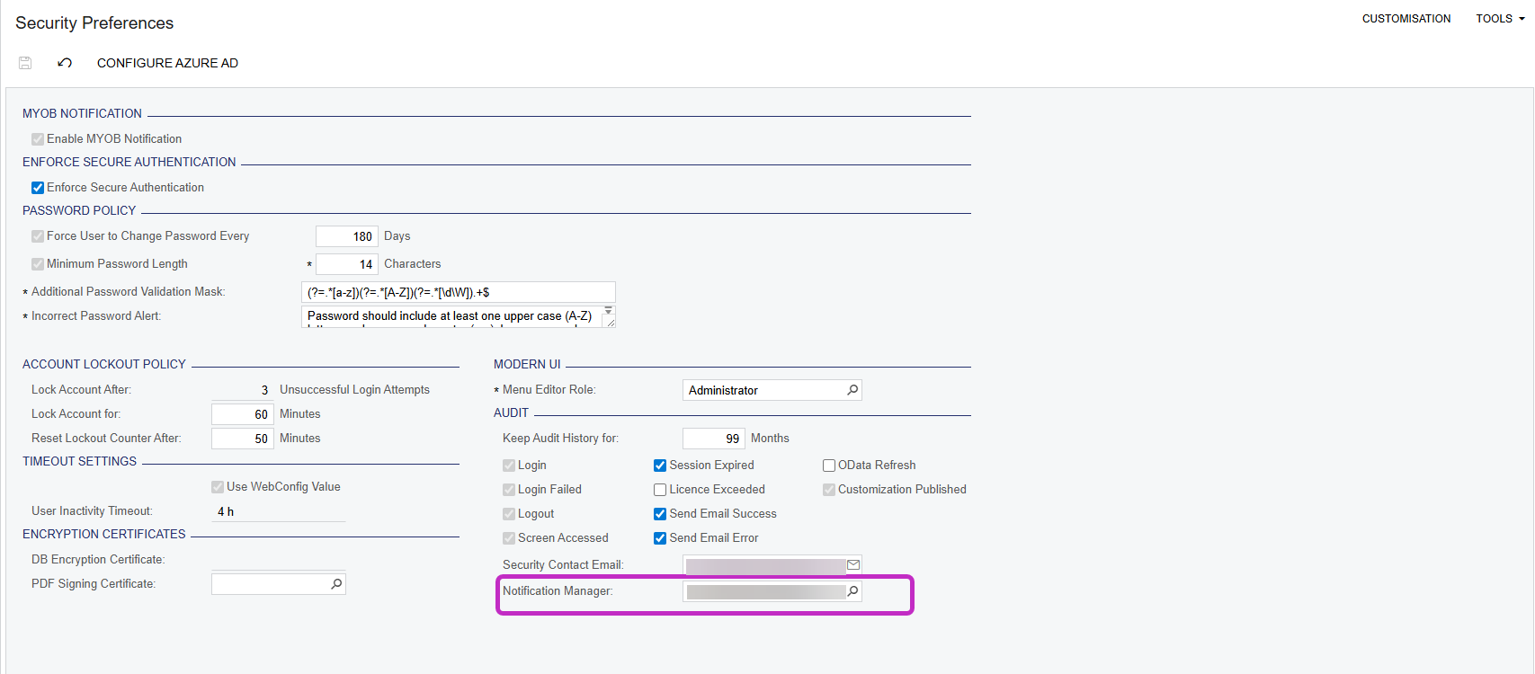 - Change Notification Manager to the user trying to create the new tenant, e.g.: